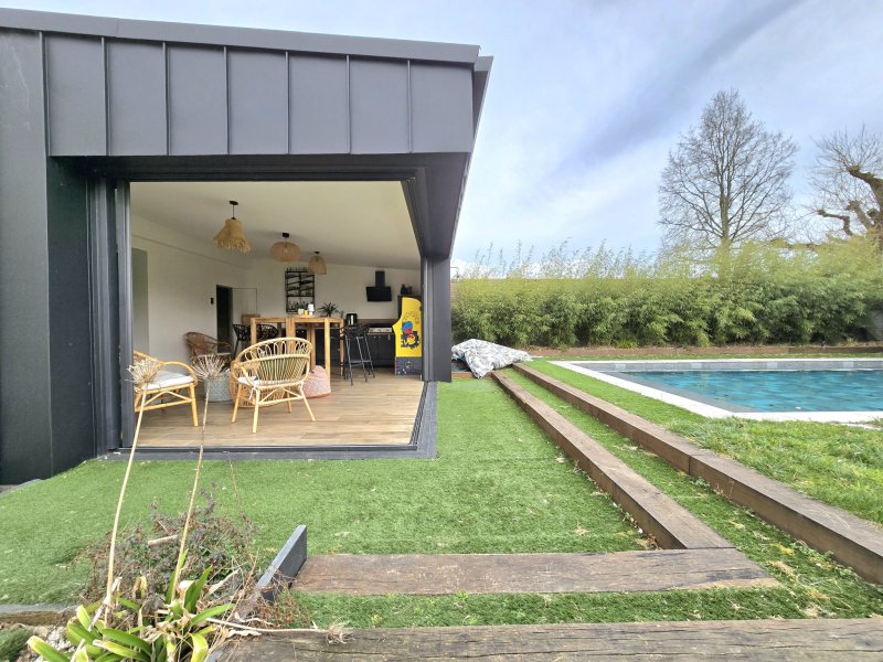 VALLET - 44330 - Maison familiale de 162m2 sur un terrain de 619 m2. Référence : 1469PA À seulement 4 minutes des commerces de Vallet et à proximité immédiate de la gare du Pallet, cette grande maison familiale de 155 m2 habitables vous ouvre ses portes dans un environnement privilégié. Rénovée en 2021 avec des matériaux haut de gamme et agrandie dans la foulée, elle offre aujourd'hui un cadre de vie exceptionnel, alliant confort moderne et prestations rares. Dès l'entrée, laissez-vous séduire par la pièce de vie lumineuse de près de 60 m2, avec poêle à bois et cuisine ouverte, aménagée et équipée. Cet espace convivial s'ouvre sur une grande terrasse ainsi que sur une extension récente d'environ 30 m2 abritant une cuisine d'été, un hammam et... une surprise : un puits sécurisé par une vitre renforcée offrant une vue insolite en son coeur ! Côté nuit, le rez-de-chaussée accueille une grande chambre, une salle d'eau et un WC. À l'étage, un couloir dessert trois belles chambres supplémentaires, un dressing (ou bureau), une salle d'eau et un second WC indépendant. Pour les amoureux des espaces pratiques : un grand garage de 60 m2 complète l'ensemble. Enfin, à l'extérieur, vous profiterez d'un agréable jardin de plus de 600 m2 avec une piscine traditionnelle chauffée, parfaite pour les beaux jours. Un bien rare sur le secteur, idéal pour une famille à la recherche d'espace, de confort et de prestations bien-être. Pour plus d'informations ou pour organiser une visite, contactez-nous au 02.28.00.72.40 ou par e-mail à agence@cocooning-immobilier.com. Nous vous accueillons dans nos agences COCOONING IMMOBILIER au 61 Rue des Forges à Vallet ou au 35 Rue du Général Audibert à Gorges. Cocooning Immobilier Achat, Vente, Estimation. Votre projet, notre priorité. Les informations sur les risques auxquels ce bien est exposé sont disponibles sur le site Géorisques : www.georisques.gouv.fr