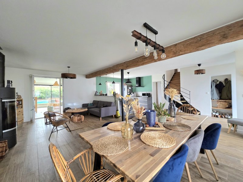 VALLET - 44330 - Maison familiale de 162m2 sur un terrain de 619 m2. Référence : 1469PA À seulement 4 minutes des commerces de Vallet et à proximité immédiate de la gare du Pallet, cette grande maison familiale de 155 m2 habitables vous ouvre ses portes dans un environnement privilégié. Rénovée en 2021 avec des matériaux haut de gamme et agrandie dans la foulée, elle offre aujourd'hui un cadre de vie exceptionnel, alliant confort moderne et prestations rares. Dès l'entrée, laissez-vous séduire par la pièce de vie lumineuse de près de 60 m2, avec poêle à bois et cuisine ouverte, aménagée et équipée. Cet espace convivial s'ouvre sur une grande terrasse ainsi que sur une extension récente d'environ 30 m2 abritant une cuisine d'été, un hammam et... une surprise : un puits sécurisé par une vitre renforcée offrant une vue insolite en son coeur ! Côté nuit, le rez-de-chaussée accueille une grande chambre, une salle d'eau et un WC. À l'étage, un couloir dessert trois belles chambres supplémentaires, un dressing (ou bureau), une salle d'eau et un second WC indépendant. Pour les amoureux des espaces pratiques : un grand garage de 60 m2 complète l'ensemble. Enfin, à l'extérieur, vous profiterez d'un agréable jardin de plus de 600 m2 avec une piscine traditionnelle chauffée, parfaite pour les beaux jours. Un bien rare sur le secteur, idéal pour une famille à la recherche d'espace, de confort et de prestations bien-être. Pour plus d'informations ou pour organiser une visite, contactez-nous au 02.28.00.72.40 ou par e-mail à agence@cocooning-immobilier.com. Nous vous accueillons dans nos agences COCOONING IMMOBILIER au 61 Rue des Forges à Vallet ou au 35 Rue du Général Audibert à Gorges. Cocooning Immobilier Achat, Vente, Estimation. Votre projet, notre priorité. Les informations sur les risques auxquels ce bien est exposé sont disponibles sur le site Géorisques : www.georisques.gouv.fr