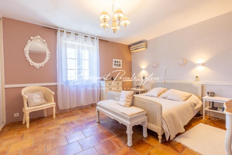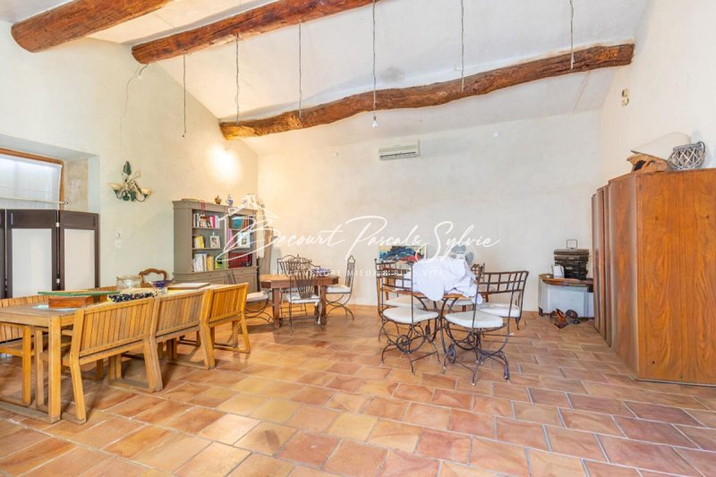 Le portillon donne directement accès à une verrière de 27 m2 puis à une très jolie cours intérieur clos de murs avec face à la maison un ancien pigeonnier et un petit bassin qui acceuille quelques poissons. Puis on entre dans la batisse par une porte fermière. C'est la salle à manger, La pièce est équipée d'une cheminée à foyer fermé qui donne également dans la pièce suivante qui n'est autre que la cuisine. C'est alors une enfilade de piéces dans tout le rez-de-chaussé. On est en Provence... La cuisine laisse place à une petite pièce qui n'était autre que l'ancienne entrée. Ici se trouve l'escalier qui mène à l'étage. Puis un grand salon avec cheminée et foyer ouvert complète le rez de chaussée. A l'étage, 4 chambres de très belle taille ainsi qu'une salle de bains complète.