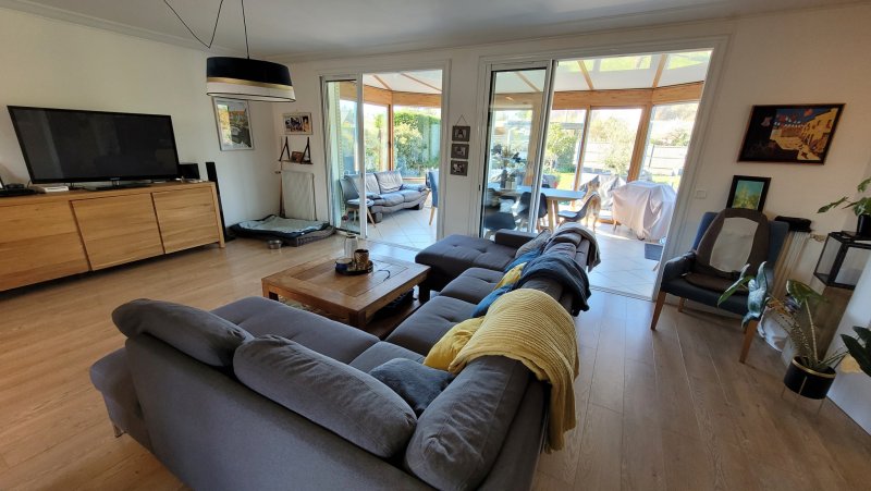 L'agence VIMMO vous propose en NOUVEAUTE cette grande maison FAMILIALE à étage comprenant au RDC une entrée, un beau salon séjour, une jolie cuisine aménagée et équipée (ouverte), 4 grandes chambres (avec placards), une salle de bains, un atelier et une buanderie chaufferie, un WC. A l'étage, un grand pallier (faisant office de bureau ou salle de jeux), 3 belles chambres avec dressings, une salle de lecture, un autre WC et une salle d'eau, un grenier (aménageable) ainsi que de nombreux rangements. Chauffage par chaudière gaz de ville. Bien chaleureux et ne nécessitant aucun travaux, la maison, de 1966, a été régulièrement et correctement entretenue depuis 2009. Ouvertures en alu DV OB, volets. Sols carrelage, stratifiés de bonne qualité, en bon état. Murs/plafonds en peinture en bon état également. Vous trouverez à l'extérieur une belle piscine (Desjoyaux) chauffée par pompe à chaleur avec bâche et un superbe aménagement paysagé avec une grande terrasse orientée sud.Stationnement de 2 véhicules sous un carport. Un jardin plus intime à l'arrière et un cabanon de jardin complètent ce bien unique ! Cette agréable maison est proche du bourg de Vertou, de la Sèvre, la ligne de bus TAN no28 est à 100m. Beau terrain sans vis-à-vis de 984m2, jardin clos et intime, exposition sud. En bref, une jolie maison familiale très bien bien située, paisible et proche de tout ! À vos offres ! Visites, informations et photos supplémentaires en m'appelant au O6 85 14 99 07. Victor Gaudin - Agent Immobilier FNAIM à Vertou.