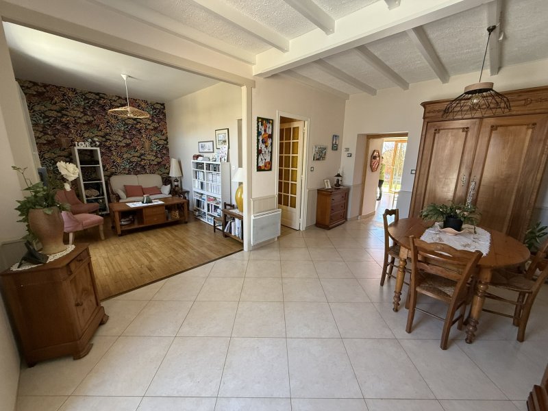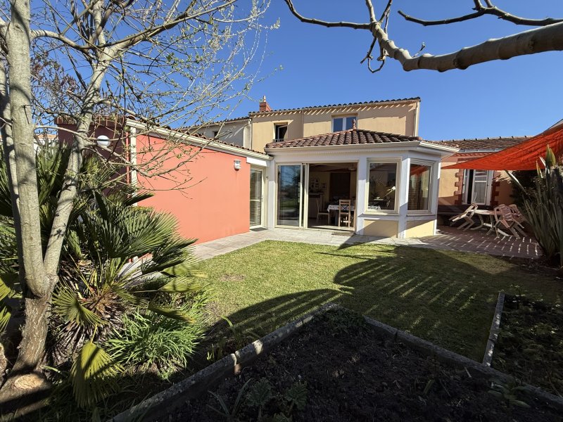 - NOUVEAU - L'agence VIMMO (Guillaume DESEUVRE O6 42 71 18 26) vous propose cette agréable maison alliant charme et confort, située dans un quartier calme à proximité immédiate des commerces À PIED et de la Sèvre Nantaise, des transports en commun (Bus 97 à 600 mètres) et des écoles ainsi qu'un accès facile pour rejoindre le centre-ville de Nantes (20 minutes). Maison de 138m2 avec parcelle de jardin 340m2, 4 chambres, 2 salles de bains, une buanderie, une dépendance attenante (11m2), un abri jardin (4,30m2) et une cour bitumée pour 3 véhicules, comprenant : -- Au Rez-de-chaussée : - une entrée, desservant 2 beaux espaces de vie (totalisant 55m2) lumineux, donnant sur une terrasse carrelée et le jardin intimiste (exposition Ouest). - une cuisine ouverte aménagée-équipée (année 2021) (évier, plaque de cuisson, hotte, four, lave-vaisselle). - une buanderie (8m2) avec évier et rangements. - un 1er espace nuit comprenant 2 chambres (10,70m2 et 11,08m2) dont une avec dressing sur mesure, une salle de bains (5,20m2) (2 vasques, baignoire) et un W.C indépendant (1,42m2) avec lave-mains. -- A l'étage : - un palier (2,70m2) desservant 2 chambres (10m2 et 23m2) équipée chacune d'un placard, une salle d'eau (4,75m2) (1 lavabo, douche, et un W.C). > En annexe, une dépendance (11m2) et espace de stationnement bitumée (capacité 3 véhicules). > Un jardin d'une surface de la parcelle de 340m2 et une terrasse. * Chauffage : Électrique (radiateurs). * Huisseries Aluminium et PVC double vitrage / Ravalement façades 2016 / Isolation des combles (2015) / Connexion fibre optique / Taxe foncière : 1.181EUR. DPE : Classe énergie D / GES : B Contactez-moi au O6 42 71 18 26 pour plus de renseignements et programmer une éventuelle visite. Guillaume DESEUVRE ; Agence VIMMO, Agent Commercial (adhérent FNAIM) à Vertou, Professionnel inscrit au RSAC Nantes N2017AC00369