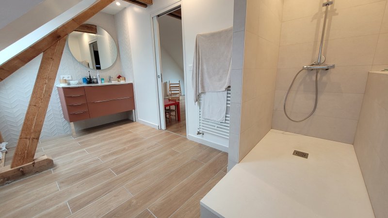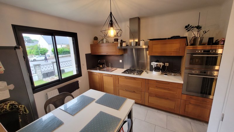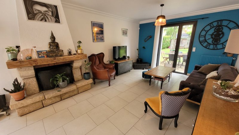 TROP TARD, VENDUE PAR L'AGENCE VIMMO ! L'agence VIMMO vous propose en exclusivité cette belle et grande maison à étage (type néo-bretonne) comprenant au RDC une entrée, un salon séjour traversant avec cheminée, une cuisine aménagée et équipée, 2 grandes chambres (avec placards), une salle de bains, un grand garage et une buanderie chaufferie, un WC. A l'étage, un immense pallier (faisant office de bureau ou salle de jeux), 3 chambres avec placards, un autre WC et une salle d'eau. Une grande terrasse à l'arrière et un cabanon de jardin complètent ce bien unique ! Chauffage par chaudière gaz de ville (2016). Bien chaleureux et ne nécessitant aucun travaux, la maison a été entièrement rénovée et agrandit en 2013. Ouvertures en alu DV OB, volets roulants électriques (domotique) Sols carrelage, contrecollés, stratifiés de bonne qualité, en très bon état. Murs/plafonds en peinture en excellent état également. Cette agréable maison est au calme d'une impasse, à 5min à pied du Busway, des commerces de Vertou Beautour, de la Sèvre, du Lycée des Bourdonnières. Beau terrain sans vis-à-vis de 589m2, jardin clos et intime, exposition ouest. En bref, une jolie maison familiale bien située, paisible et proche de tout ! À vos offres ! Visites, informations et photos supplémentaires en m'appelant au 06 85 14 99 07. Victor Gaudin - Agent Immobilier FNAIM à Vertou.