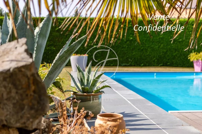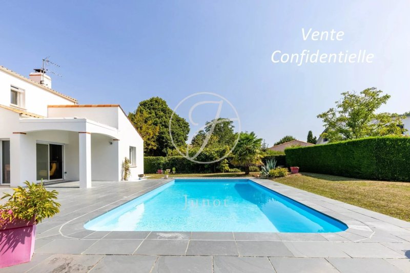 Quartier résidentiel du Chêne à Vertou, maison de 1998 de 148m² habitables, rénovée et parfaitement entretenue sur un terrain de 1.152m² paysagé, entièrement clos. Piscine chauffée avec volet de sécurité immergé.