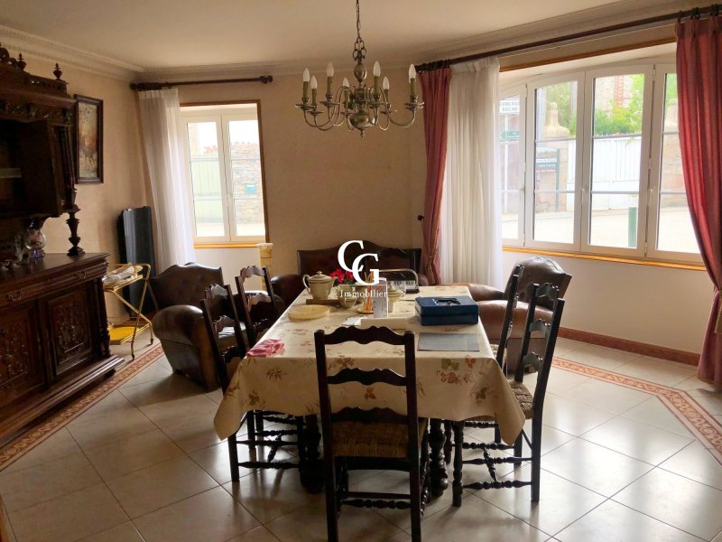 Maison de caractère à Vieillevigne Le Cabinet Guémené vous présente en exclusivité, au coeur du bourg de VIEILLEVIGNE, en proximité de toutes les commodités à pied : sur son terrain clos de 612m², une charmante maison ancienne T11 en pierre de 242m² avec un beau potentiel évolutif selon les besoins du fait de sa configuration. Le bien dispose d'une belle façade sur rue avec au rez-de-chaussée plusieurs entrées, quatre espaces de vie (25, 27, 17 et 16m²), cuisine aménagée, une chambre, buanderie, salle d'eau avec wc. A l'étage : grand dégagement, 5 belles chambres sur parquet, bureau, salle de bains, wc. Un grenier sur une partie, de 28m², peut permettre un aménagement efficace avec la partie rez-de-chaussée pour un petit logement indépendant par exemple. Nombreuses dépendances apportant une surface utile : une première partie de 51m² + garage de 23m². Et donnant au fond de la cour avec un accès indépendant de la maison sur une autre rue : ancien pressoir et cave pour un total de 61m², coin labo. L'extérieur offre une cour complètement fermée. Honoraires inclus de 4.5% TTC à la charge de l'acquéreur. Prix hors honoraires 247 000 . Classe énergie F, Classe climat C Logement à consommation énergétique excessive. Montant estimé des dépenses annuelles d'énergie pour un usage standard : entre 6570.00 et 8910.00 sur les années 2021, 2022 et 2023 (abonnements compris). Les informations sur les risques auxquels ce bien est exposé sont disponibles sur le site Géorisques : georisques.gouv.fr.