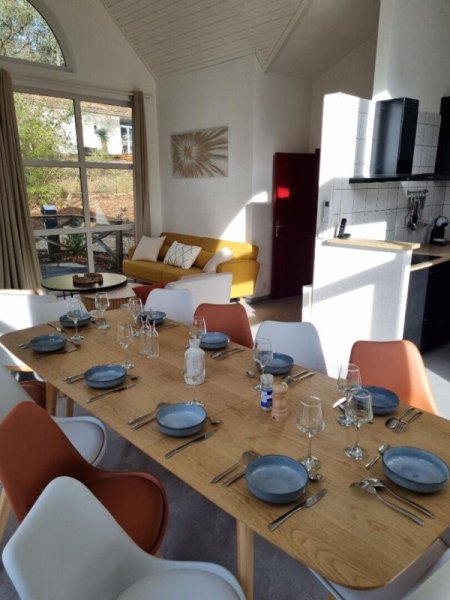 Scindée en deux parties indépendantes, elle dispose pour chaque partie d'une cuisine équipée ouverte, d'un salon et d'un total de 5 chambres (3 + 2) dont 4 suites parentales, 4 salles de bain et 4 toilettes. La propriété est équipée pour les personnes à mobilité réduite.