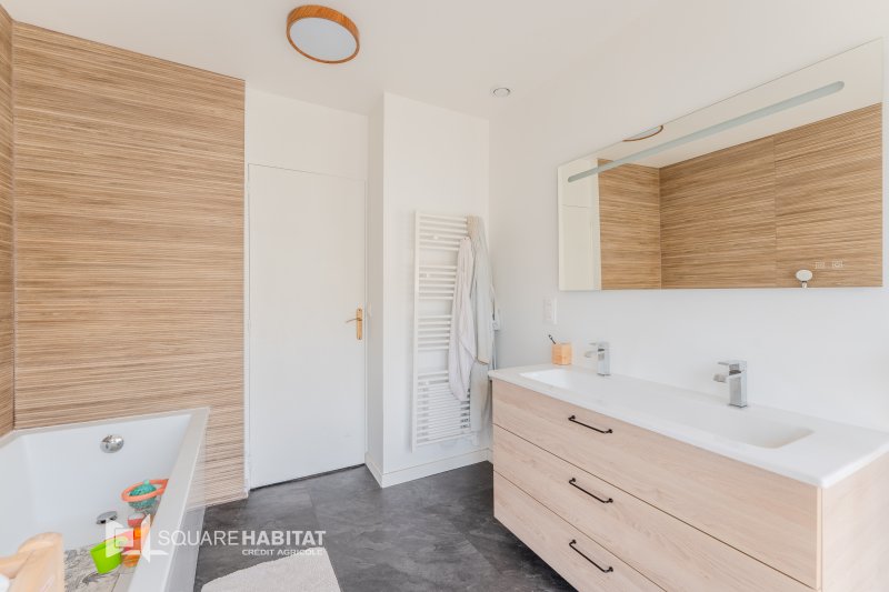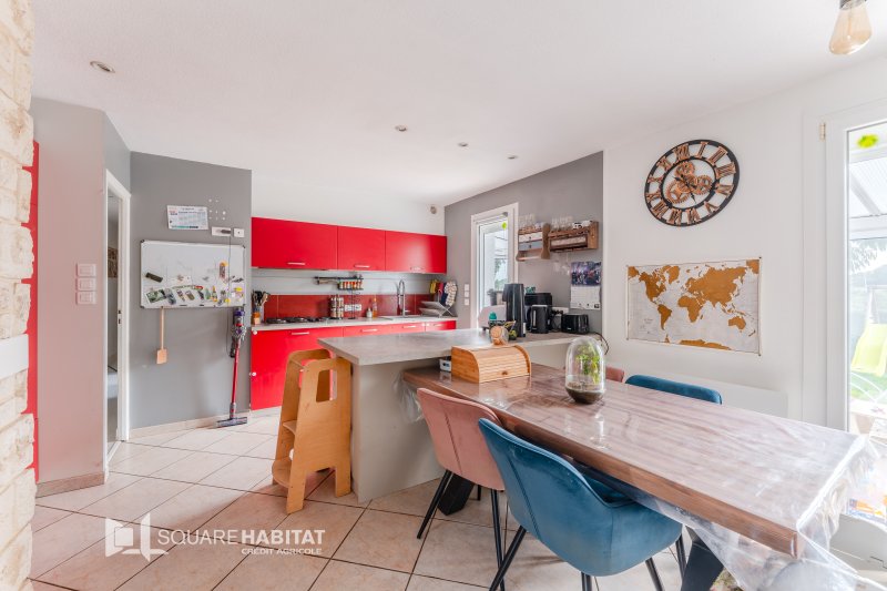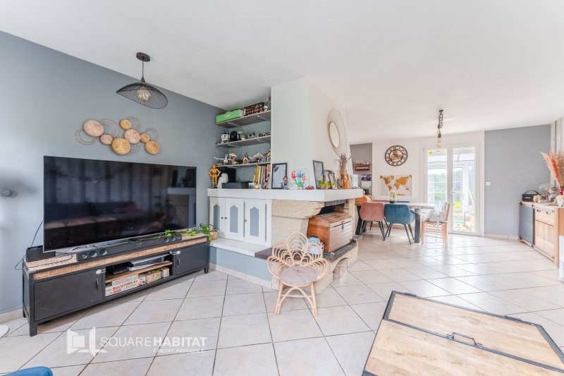 Elle offre un salon-séjour lumineux avec cheminée, une cuisine ouverte aménagée et équipée, trois chambres dont une suite parentale, une salle de bains et une buanderie.