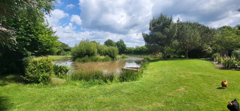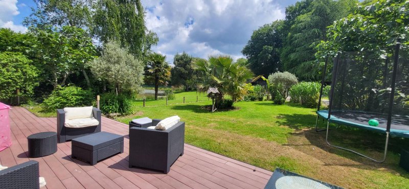 Au calme dans son écrin de verdure, jolie maison avec très belle vie de plain pied offrant, un hall d'entrée, un salon, un séjour cuisine équipée avec cheminée donnant sur une terrasse bien exposée, une suite parentale et trois autres chambres. Elle est dotée également d'un espace bureau salle de jeux et d'une grande arrière cuisine. Vous serez séduit par son terrain paysagé de plus d'un hectare avec plan d'eau et dépendances.