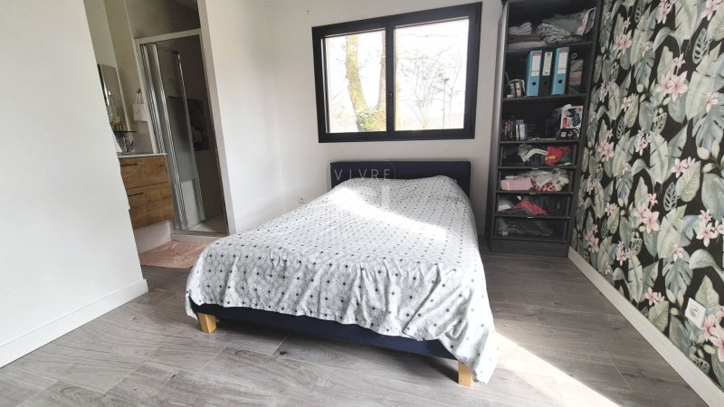 Le rez-de-chaussée accueille une suite parentale avec chambre, dressing et salle d'eau privative, offrant confort et indépendance.