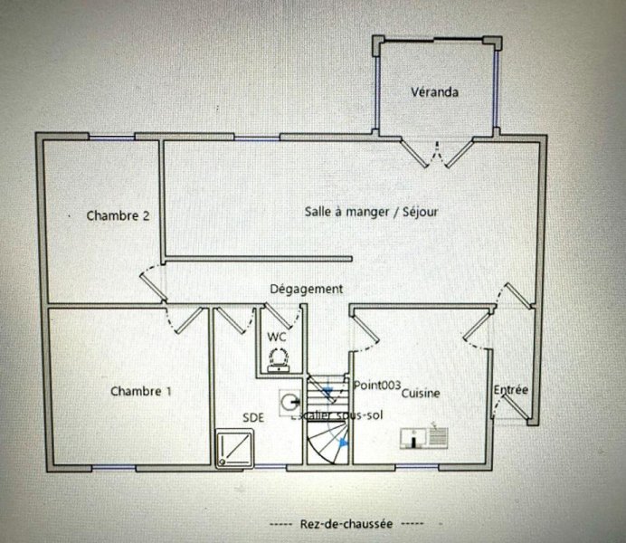 L'habitation se compose d'une entrée, d'un agréable et lumineux salon/séjour de 25 m2, ouvert sur une véranda de 11 m2 carrelée, d'une cuisine fonctionnelle de 11 m2, avec possibilité d'ouvrir facilement sur le séjour, dégagement, deux chambres parquetées dont une avec placard/dressing intégré, salle d'eau, WC séparé.