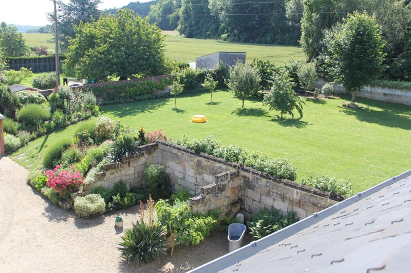 Magnifique jardin clos de murs en pierre et grillage rigide, idéal pour les enfants ou les animaux