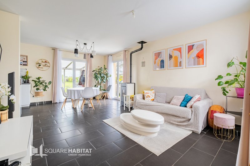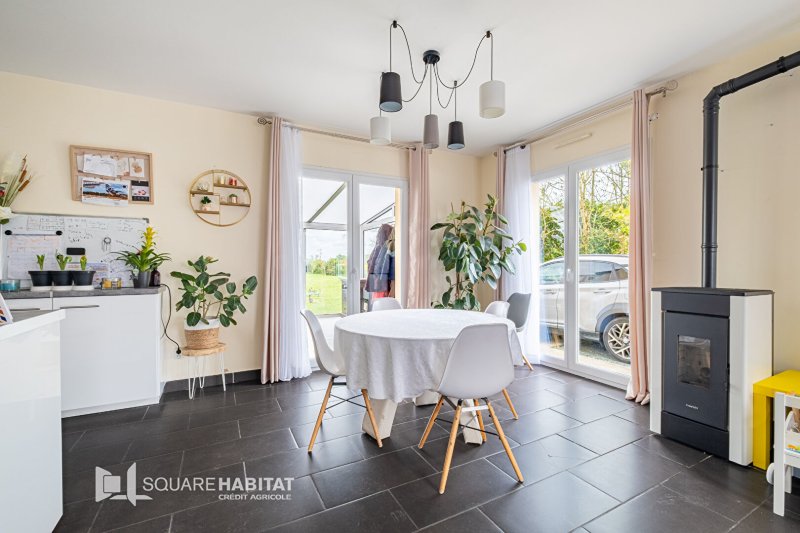 Concernant les équipements techniques : la maison est raccordée au tout-à-l'égout, chauffée par une pompe à chaleur avec plancher chauffant, complétée par un poêle à pellets pour plus de confort.