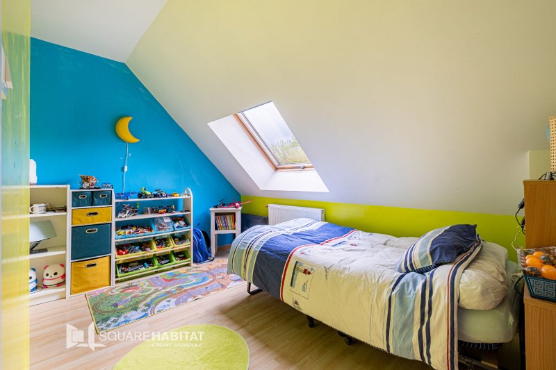 À l'étage, un spacieux palier dessert deux chambres, une salle de bain avec WC, et un grenier aménageable offrant la possibilité de créer une quatrième chambre.