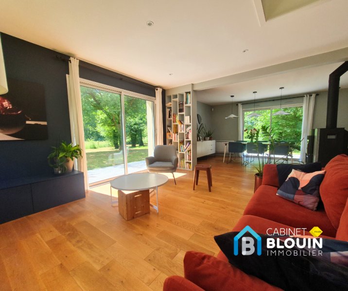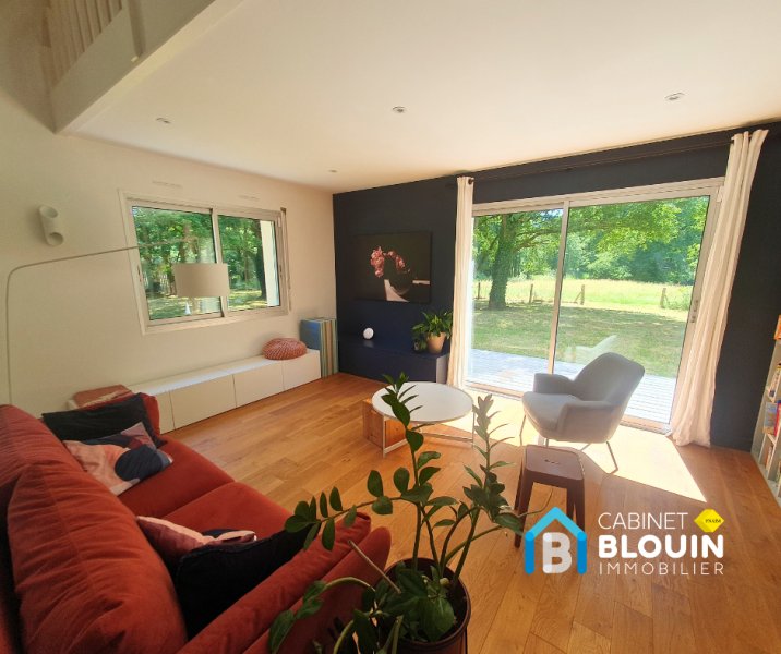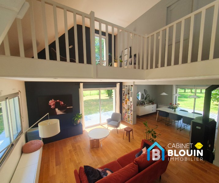 En hameau paisible, dans une propriété de 5 hectares d'un seul tenant ; venez découvrir cette maison d'architecte rénovée en 2019 ; vous y découvrirez une cuisine aménagée et équipée ouverte sur un vaste salon/séjour lumineux, une chambre avec sa salle d'eau privative, une salle de jeu, une buanderie, un WC indépendant et une pièce avec accès extérieur pouvant faire office de chambre supplémentaire ou autre selon votre guise.