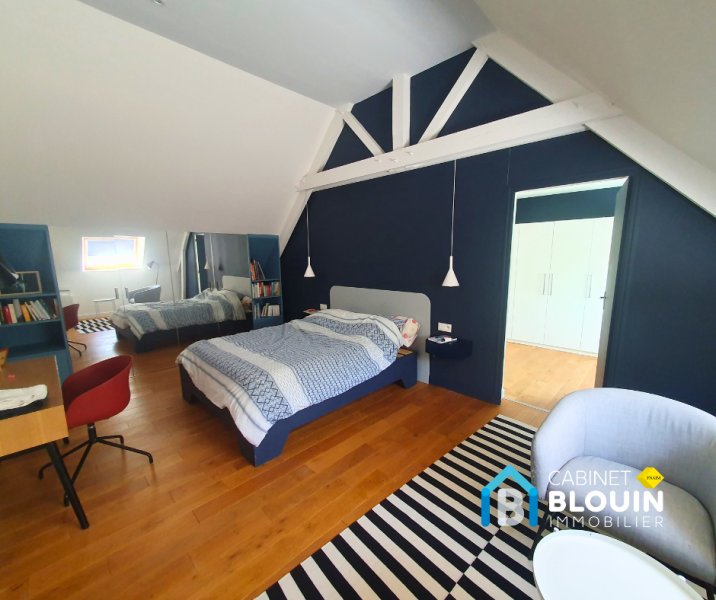 A l'étage, vous découvrirez une grande mezzanine distribuant deux chambres avec placards, une suite parentale avec son dressing, une salle d'eau et un WC indépendant. Possibilité de créer une pièce d'eau supplémentaire.