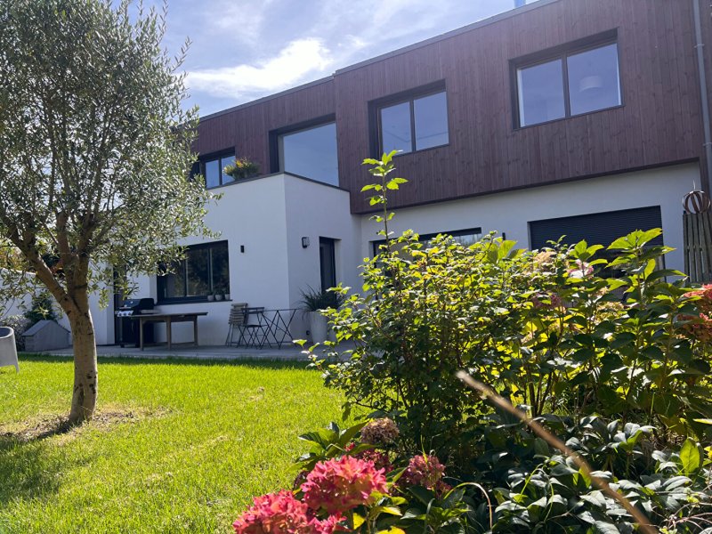 Magnifique maison d'architecte contemporaine, 5 chambres et Bureau, construite en 2022, située dans un environnement calme en fond de voie sans issue et sans vis-à-vis. Avec ses prestations haut de gamme, aménagements sur mesures, ce bien vous séduira par ses espaces ouverts, lumineux et ensoleillés. Normes RT2012-Domotique-Double flux, panneaux solaires, chauffage au sol,...
