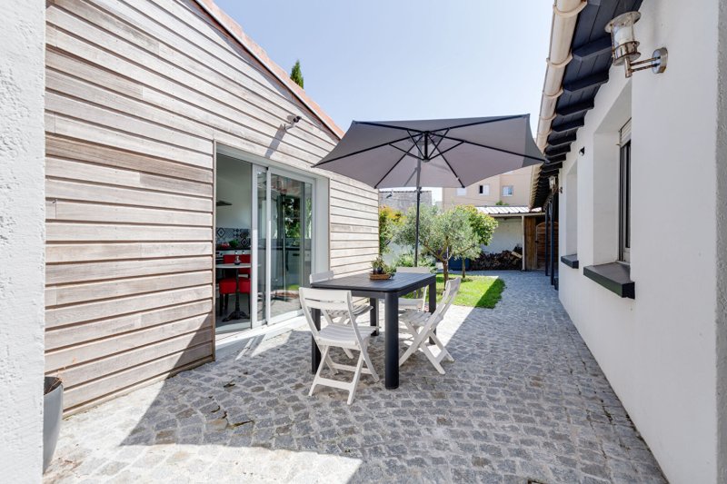 A vendre, nichée en fond d'impasse, une maison pour une vie de plain pieds avec patio exposé Sud/ouest. Vous serez séduit par cette maison d'environ 136 M² carrez et 153 M² au sol qui se compose d'une entrée, WC indépendant, une chambre avec sa salle de douche, une pièce vivre avec insert, hauteur sous plafond, cuisine aménagée et équipée attenant à une grande lingerie aménagée. Un beau dégagement avec penderie, 2 chambres avec chacune leur salle de douche et dressing et WC. Le tout vue sur patio et verdure. Au premier, accès à une mezzanine, pt salon et coin nuit. Parking
