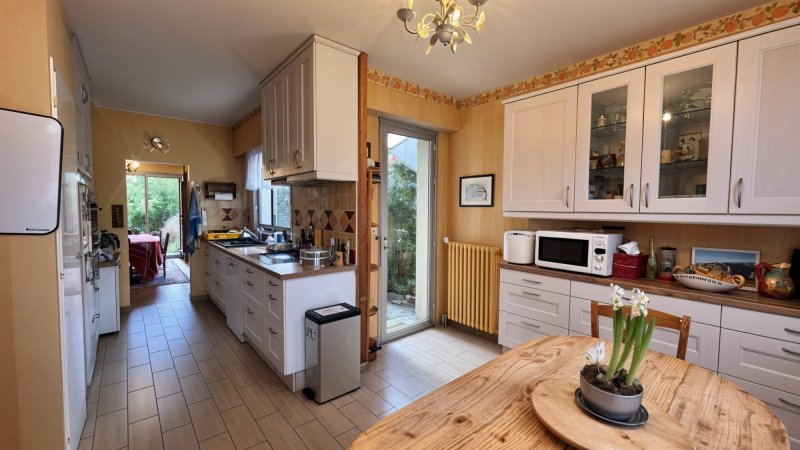 Quartier Américain- Rond point de Rennes. Rare sur le secteur. Belle maison familiale de 220 m2 mitoyenne d'un côté vous séduira par sa belle distribution et sa grande pièce de vie avec cheminée de plain pied avec le jardin, expostion Sud Ouest. Au RDC : Une entrée dessert une grande pièce de vie de 52 m2 avec une exposition Sud Ouest, une cuisine avec coin repas de 18 m2, un wc. Au 1er Etage : 4 belles chambres avec placards ou dressing, une salle de bain, une salle d'eau avec un wc. Au 2ème Etage : 3 chambres avec placards sous combles, une salle d'eau et un pièce buanderie avec wc. En annexes : un garage attenant à la maison avec une pièce en sous sol. Abri de jardin. Maison située à proximité de plusieurs lignes de bus (C2, 12, 3), de commerces ainsi que des écoles (Perverie à 4min en vélo). Rafraîchissement à prévoir. Contactez Claire CAMUS au 06 99 18 27 79. Honoraires inclus de 2.92% TTC à la charge de l'acquéreur. Prix hors honoraires 720 000 . Classe énergie D, Classe climat D Montant estimé des dépenses annuelles d'énergie pour un usage standard : entre 4150.00 et 5680.00 sur les années 2021, 2022 et 2023 (abonnements compris). Les informations sur les risques auxquels ce bien est exposé sont disponibles sur le site Géorisques : georisques.gouv.fr.