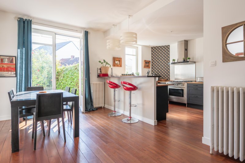 À VENDRE, A NANTES (44100), quartier Zola, découvrez cette superbe maison de caractère de 196 m2, en parfait état, où chaque espace a été pensé pour allier confort, élégance et vie de famille. Dès l'entrée, vous serez séduits par un vaste séjour baigné de lumière, sublimé par une cheminée fonctionnelle, ouvert sur une cuisine conviviale et une salle à manger chaleureuse. Un lieu de vie idéal pour recevoir et partager. La maison offre une vraie vie de plain-pied avec une chambre au rez-de-chaussée, accompagnée de sa salle d'eau et de son dressing. Une lingerie et des WC complètent ce niveau. À l'étage, quatre belles chambres accueillent famille et invités, avec une salle de bain, une salle d'eau et des WC. En rez-de-rue, une grande pièce indépendante ouvre le champ des possibles : salle de jeux, bureau, espace télétravail ou activité professionnelle. Côté extérieur, le charme opère immédiatement : un joli jardin exposé sud, sans vis-à-vis, véritable cocon de tranquillité. En fond de parcelle, avec accès rue/jardin, un garage vient compléter l'ensemble. Cave, atelier, volumes généreux, décoration soignée... cette maison coche toutes les cases d'un bien familial complet, prêt à vivre. Plus qu'une maison, un véritable lieu de vie pensé pour les moments qui comptent ! Les informations sur les risques auxquels ce bien est exposé sont disponibles sur le site Géorisques: www.georisques.gouv.fr
