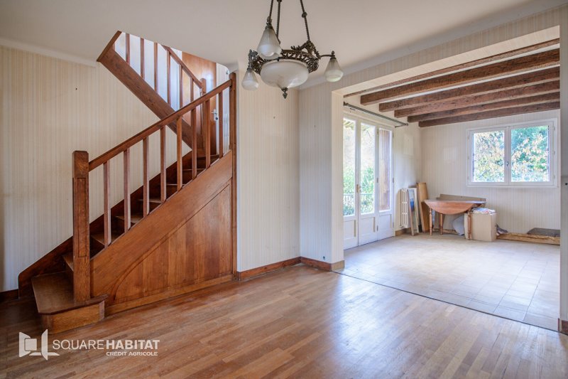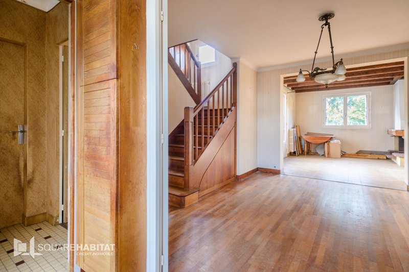 Belles perspectives d'évolution pour cette maison de 1960 à rénover (Audit + chiffrage travaux réalisés). Elle dispose de 80m² habitables à adapter selon vos besoins. Un espace de vie déjà défini de 37m² avec cuisine ouverte et salon avec cheminée, 3 chambres