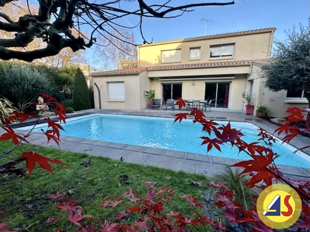 ST JACQUES. Aux portes de toutes commodités. Maison aux volumes généreux se composant d'un hall d'entrée, belle pièce de vie de 60 m2 (cheminée), cuisine A-E, suite parentale (chambre, dressing, salle de bains, wc), chambre, lingerie et garage double. Etage : 3 chambres avec salle d'eau chacune, bureaux, wc. Terrain de 960 m2 avec piscine chauffée. Les informations sur les risques auxquels ce bien est exposé sont disponibles sur le site Géorisques : www.georisques.gouv.fr