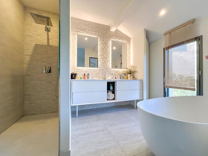 33800 - BORDEAUX - NANSOUTY - PLACE NANSOUTY. Idéalement située dans le quartier prisé de Nansouty, cette maison INTEGRALEMENT RENOVEE, disposant de tous les agréments de confort recherchés, avec TERRASSE, PISCINE et JACUZZI vous séduira. L'entrée distribue une belle pièce à vivre avec salon TV et CHEMINEE au bio-éthanol, une salle à manger, une cuisine équipée avec ILOT CENTRAL. L'ensemble s'ouvre, par des BAIES A GALANDAGE, sur un très bel extérieur PAYSAGE avec ARROSAGE AUTOMATIQUE, terrasse en BOIS EXOTIQUE, PISCINE TOUTES OPTIONS (chauffée, au sel, régulateur de pH, volet roulant) et JACUZZI pour des moments de détente et de convivialité. Ce niveau est complété par un espace bureau idéal pour le télétravail, une pièce BUANDERIE dédiée ainsi qu'un WC indépendant. A l'étage, vous trouverez trois chambres dont une VASTE SUITE PARENTALE avec DRESSING PRIVATIF et SALLE DE BAINS avec DOUCHE ITALIENNE et BAIGNOIRE (PORCELANOSA), un bureau ou quatrième chambre enfant, une SALLE D'EAU indépendante (PORCELANOSA) et un WC, garantissant confort et fonctionnalité au quotidien. Un STUDIO INDEPENDANT MEUBLE, idéal pour générer des REVENUS LOCATIFS ou pour recevoir des proches, complète ce bien. Une CAVE SAINE vient également agrémenter la maison, offrant un espace dégustation ainsi qu'un lieu de RANGEMENTS appréciable. Cette maison a fait l'objet d'une TRES BELLE RENOVATION avec l'utilisation de MATERIAUX NOBLES où chaque détail a été pensé pour mêler ESTHETIQUE et FONCTIONNALITE. TOITURE, CHARPENTE, ISOLATION, ELECTRICITE, PLOMBERIE REFAITES A NEUF (garanties décennales). CLIMATISATION REVERSIBLE. CHAUDIERE à condensation NEUVE avec thermostat central. DOUBLE VITRAGE, VELUX TOUTES OPTIONS, VOLETS ROULANTS ELECTRIQUES. Un système de VIDEOSURVEILLANCE et DOMOTIQUE équipent l'ensemble de la maison ; appréciable pour les grands voyageurs.