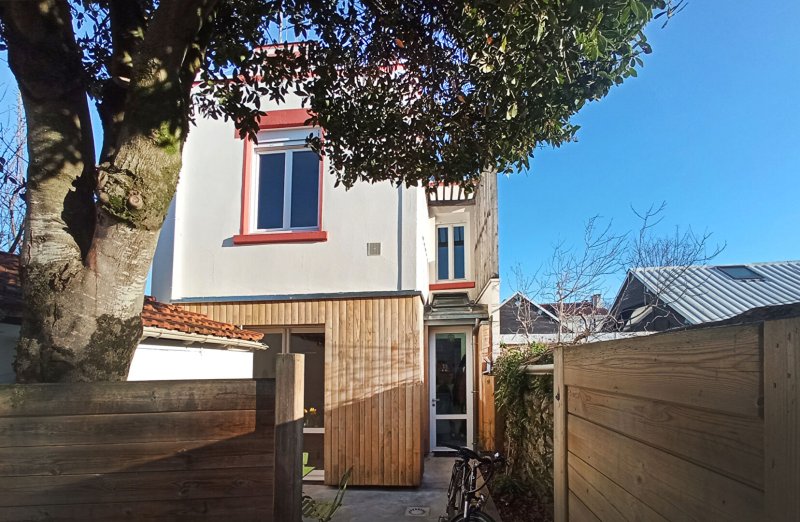 A l'étage : 2 chambres, salle d'eau. Cour avec appentis. Rare !