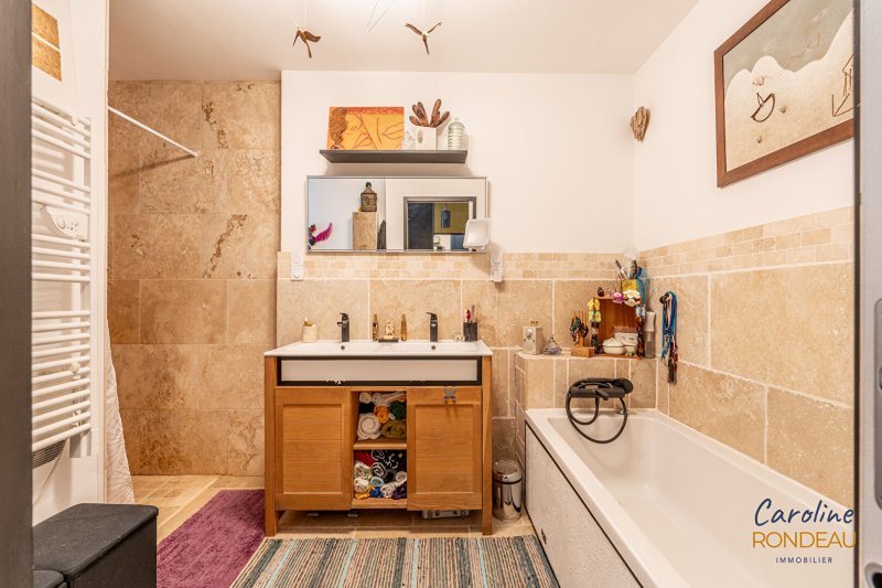 Caroline Rondeau Immobilier vous présente, a vendre maison-appartement Nantes Rte de Paris située proche de la porte de Carquefou et de la Beaujoire. Cette maison appartement entièrement rénovée est une jolie surprise. Sur une petite copropriété de 2 lots seulement. La maison s'organise vers le jardin de plain-pied. Une entrée avec un espace bureau, une grande salle de bains, une buanderie, un wc. La grande pièce de vie avec poele a granules, la cuisine ouverte A/E mène a une terrasse bois et un jardin clos et arboré. A l'étage de la maison un palier dessert 2 chambres dont une avec dressing, salle d'eau réçente avec wc. combles a aménager pour créer une 3ème chambre (possible également en rdc en réaménageant l'espace bureau actuellement ouvert). Dans le jardin, un petit cabanon et un garage en dépendance et accessible par une rue derrière la maison. Un bien unique sans travaux, très bon DPE , faibles charges, et situé aux pieds de toutes les commodités, accès transports "Ranzay", ligne 1 et accès rapide périphérique porte de Carquefou . Plus d'informations ou venir la visiter caroline 06 84 07 52 63.