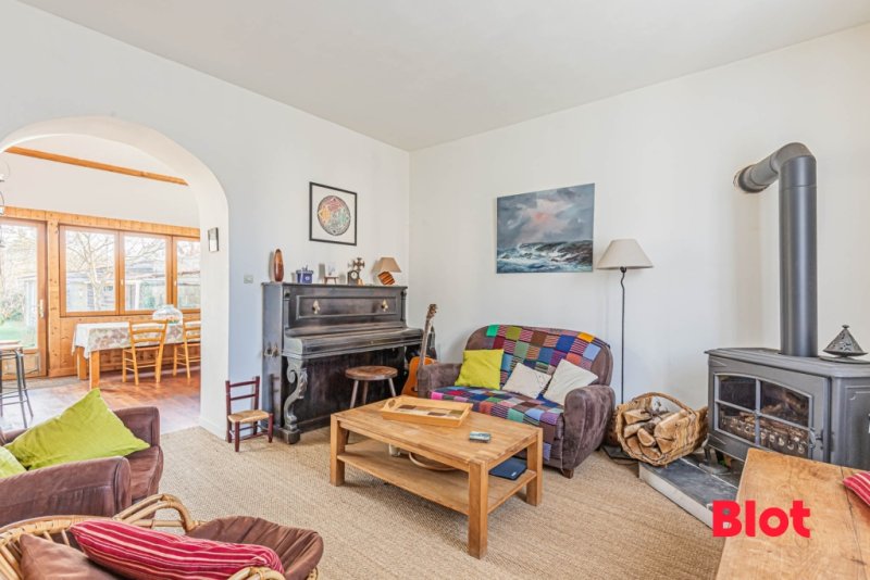 Baignée de lumière grâce à son exposition traversante, cette maison offre une atmosphère chaleureuse et conviviale. Elle se compose d'une entrée, d'une belle pièce de vie ouverte sur un vaste jardin, d'une cuisine ouverte, d'un salon, de deux chambres dont une en rez-de-chaussée, ainsi que d'un espace bureau idéal pour le télétravail.