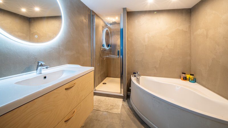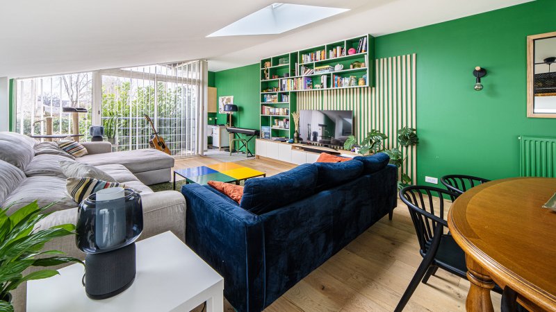 Ce bien aux prestations soignées se compose, au rez-de-chaussée, d'une entrée, de deux chambres spacieuses, d'une salle de bains, d'une salle d'eau et WC séparé. Le pallier offre une vaste pièce de réception de plus de 35 m² et une cuisine aménagée et équipée.