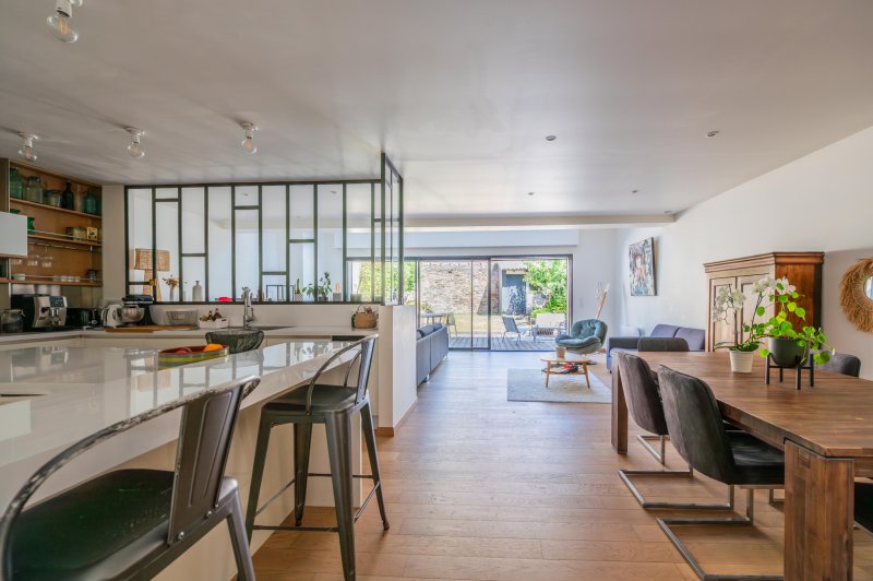 À VENDRE à NANTES (44300), Quartier Saint Felix , maison au calme d'une impasse privée Datant des années 30, elle a été agrandie et rénovée intégralement par les propriétaires actuels en 2017. D'une superficie de 138m2 elle est distribuée sur 2 niveaux : Rez-de-Chaussée : Entrée, wc, accès au garage , grande pièce de vie lumineuse en 'L' , partie salon avec cheminée à foyer ouvert fonctionnelle, larges baies vitrées offrant un accès facile sur la terrasse qui s'inscrit dans le prolongement de la la pièce de vie. Cuisine ouverte aménagée et équipée. A l'étage, un palier dessert 4 chambres , ainsi organisées: Une chambre parentale avec salle d'eau, wc et dressing attenant, 2 chambres partagent une salle d'eau avec 2 accès, et enfin, une chambre avec salle d'eau attenante bénéficie d'un espace nuit en mezzanine. Wc indépendant sur le palier. Jardin clos de murs avec appentis en fond de parcelle.Garage et emplacement pour stationnement devant la façade. Ce bien complet, aux volumes généreux, bénéficie d'un environnement familial de qualité dans un quartier prisé à proximité immédiate des écoles et commodités. Je vous recommande vivement une visite ! Caroline PALAND - Agent commercial - 06 13 52 94 23 - RSAC no 884 767 195 Les informations sur les risques auxquels ce bien est exposé sont disponibles sur le site Géorisques: www.georisques.gouv.fr
