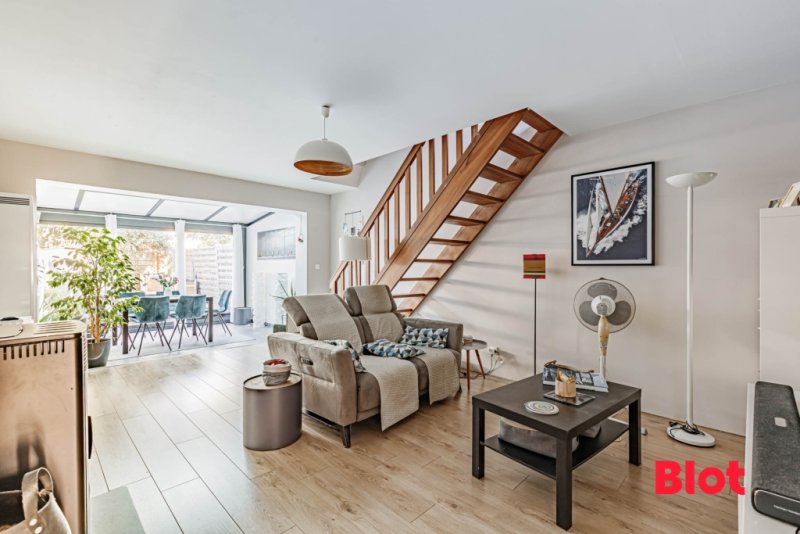 La maison comprenant : un salon-séjour d'environ 33m² donnant sur un jardin de 50m², cuisine aménagée et équipée.