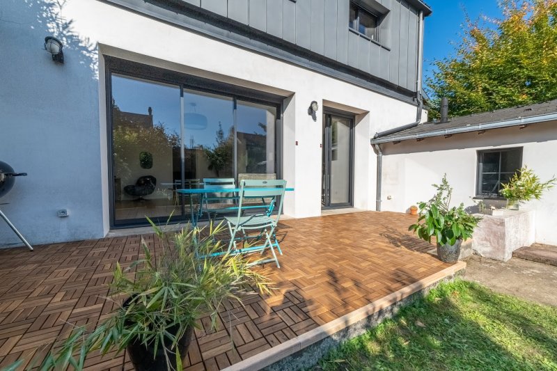 Nantes - Perverie : Au sein d'un environnement résidentiel, paisible et verdoyant, à proximité immédiate des transports, commerces et écoles, superbe maison familiale de caractère. Édifiée en 1930 sur une parcelle de plus de 220 m², elle a bénéficiée d'une rénovation haut de gamme en 2014.