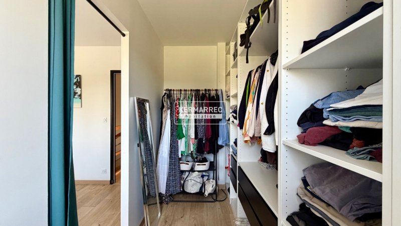 À l'étage, un palier dessert trois grandes chambres, dont une avec espace dressing, ainsi qu'une salle de bains et des toilettes séparés.
