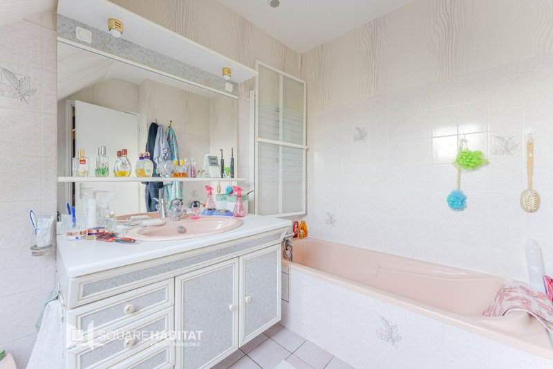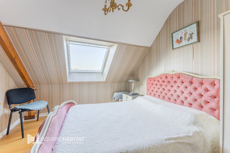 A l'étage, 2 chambres, WC et salle de bains ainsi qu'une pièce non aménagée transformable en vaste chambre traversante.