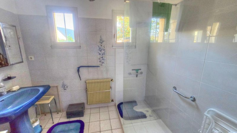 - Maison 5 pièces 164m2 . Au calme dans son impasse, je vous propose cette maison à rafraîchir, construite sur une parcelle d'environ 758 m2 en 1981. En rez-de-chaussée "vie de PLAIN-PIED" avec une entrée, une cuisine A/E ouverte sur la véranda d'environ 18m2 ,une grande salle à manger de 43 m2 donnant sur la terrasse, une salle d'eau, un w-c, une chambre de 13m2. A l'étage, un palier dessert trois grandes chambres en sous-pente et poutres apparentes, une salle de bains ainsi qu'un w-c.