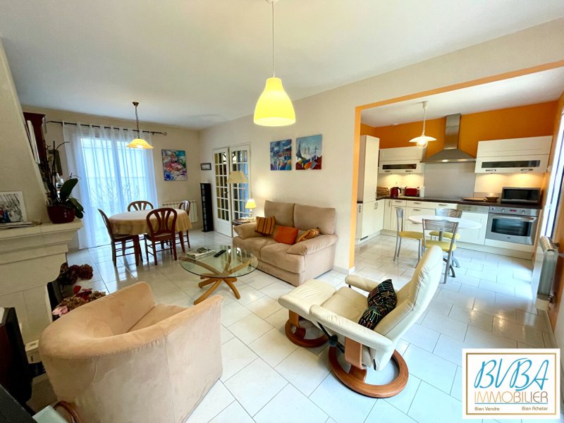 En bon état général, elle propose une pièce de vie ouverte et lumineuse ainsi que quatre chambres adaptées à la vie de famille ou au télétravail. Les huisseries récentes, les WC à chaque étage et la mitoyenneté uniquement par les garages apportent confort et intimité au quotidien.