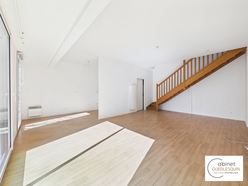 Le cabinet Guerlesquin By Côme vous propose à la vente, une maison à étage en copropriété de 107,12m2. Cet appartement bénéficie d'un environnement résidentielle et proche des commodités : commerces de proximité, établissements scolaires, espaces verts et accès facilités aux transports. Un cadre de vie idéal pour les familles comme pour les actifs en quête de confort au quotidien. Au sein d'une copropriété récente datant de 2009, découvrez cette maison à étage de 107.12 m2. Le rez-de-chaussée s'ouvre sur une entrée desservant une belle pièce de vie lumineuse donnant accès au jardin. Vous y trouverez également un coin cuisine, un dégagement dessert une chambre avec sa salle d'eau privative ainsi que des WC séparés. À l'étage, l'espace nuit se compose de trois chambres supplémentaires, d'une salle de bains et de WC séparés. Ce bien est complété par une place de stationnement en sous-sol ainsi qu'un jardin privatif exposé Sud-Ouest. Visite virtuelle sur demande. N'hésitez pas à nous contacer au 02.40.48.95.58.