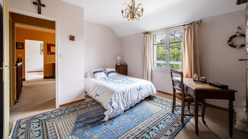 Côté nuit, ce bien de qualité propose 4 chambres spacieuses, dont une belle suite parentale en rez-de-chaussée avec salle de bains privative. À l'étage, trois autres chambres avec rangements se partagent une grande salle d'eau.