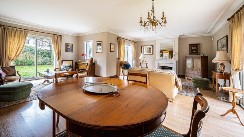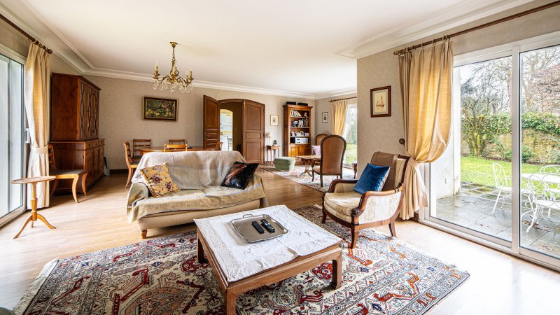 À l'extérieur, le jardin exposé plein sud, sans vis-à-vis, est une véritable invitation à la détente, tandis que les espaces annexes (garage, lingerie, grenier, abri de jardin) garantissent un confort au quotidien.