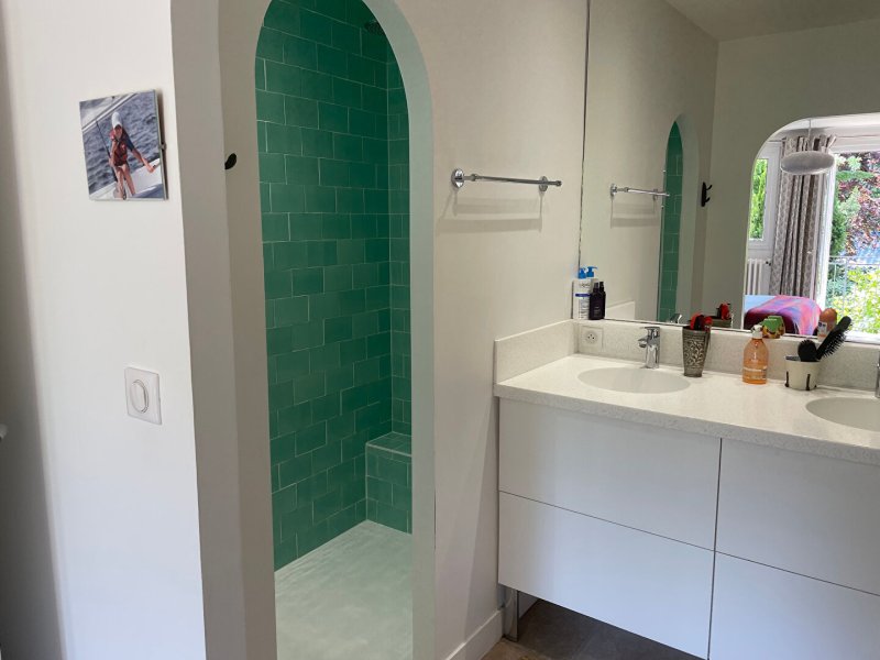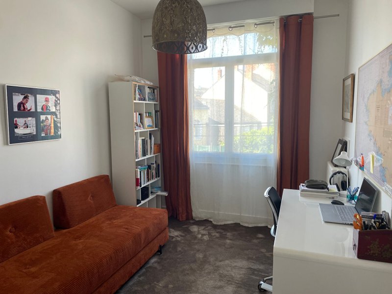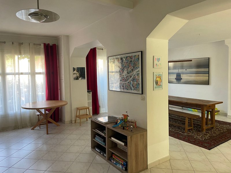 QUARTIER PLESSIS TISON Maison pleine de charme sur très joli jardin clos S/E, vaste espace de vie de 60 m² env. sur terrasse, cuisine meublée et équipée. A l'étage : 4 chambres dont une suite parentale, 2 salles d'eau. Dépendances aménagée avec toilettes et atelier, garage attenant loué.