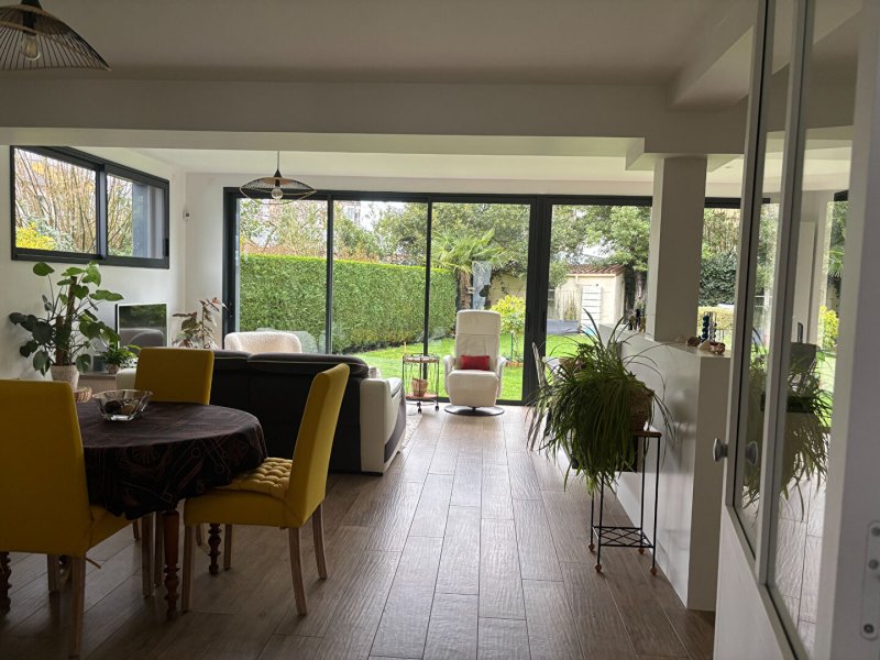 Grande maison en avenue privée sur très joli jardin offrant : Au rez-de chaussée : spacieux espace de vie avec cuisine américaine meublée et équipée donnant sur jardin (extension 2020), lingerie, chambre et salle d'eau au rez-de-chaussée, wc. A l'étage : 3 chambres, wc, salle de bains. nombreux stationnements. Prestations de qualité !