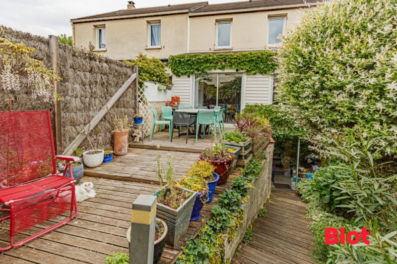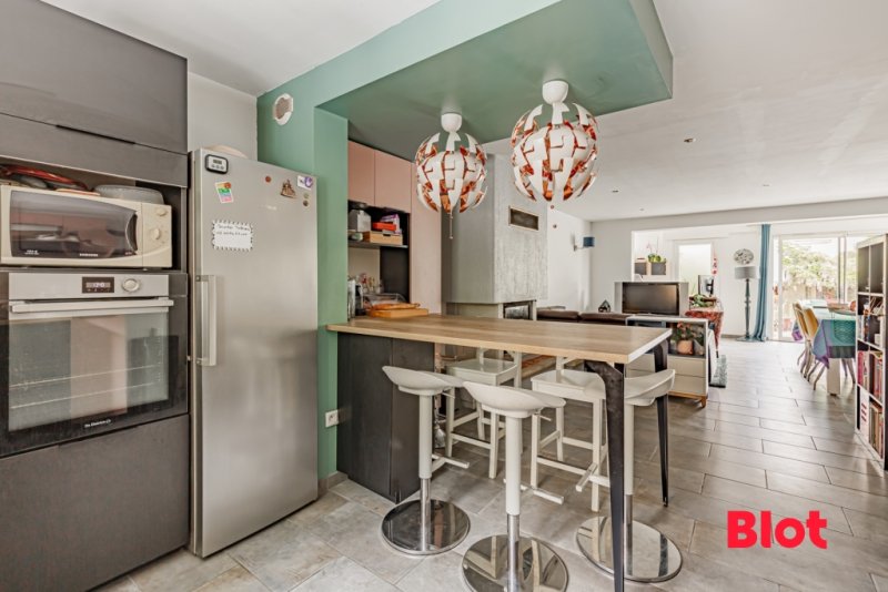 Elle bénéficie d'une belle pièce de vie traversante avec sa cuisine ouverte aménagée équipée donnant sur un jardin clos ensoleillé.