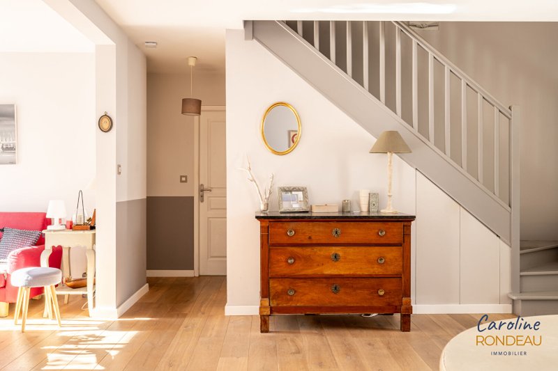 Caroline Rondeau Immobilier vous présente en exclusivité : à vendre Nantes quartier Petite Port - Bourgeonnière, jolie maison familiale en impasse, 4 chambres, bureau, garage et jardin. Située sur une paisible impasse privée et au calme, à 2 minutes à pieds du tramway et des commerces, découvrez cette maison des années 2000 non mitoyenne. Elle se compose au RDC d'une entrée, double séjour traversant avec salle à manger et salon donnant sur l'extérieur, une cuisine attenante aménagée et équipée avec coin repas, une buanderie avec accès au garage, espace nuit de plain pied avec 2 belles chambres et une salle de bains familiale. A l'étage, un palier desservant 2 chambres, un bureau, WC et une salle d'eau. A l'extérieur, une jolie terrasse bois et un jardin. Une place de stationnement en + du garage sur la parcelle. Maison en bon état général, doubles vitrages partout, chauffage électrique. Accès écoles rapide par le tramway - Arrêt recteur Schmidt. Petits commerces à pieds. Environnement familial. Pour la découvrir sans tarder, contacter Juliette Rondeau au 06 99 80 62 10.