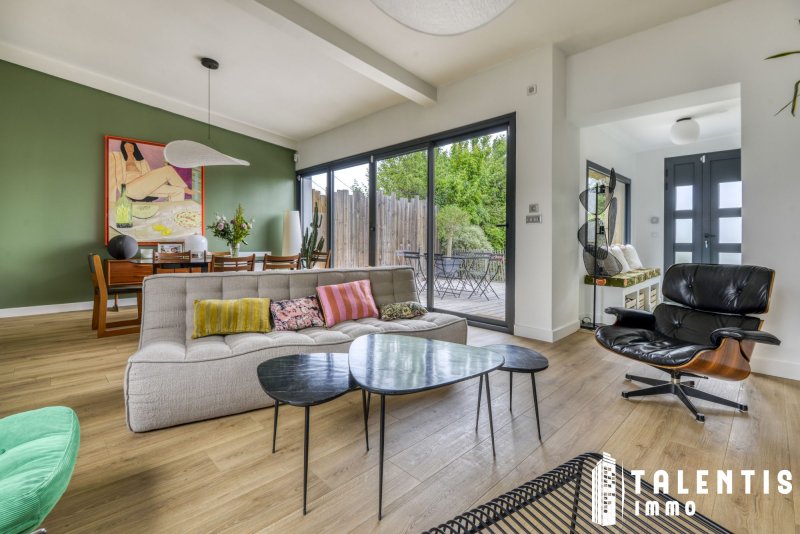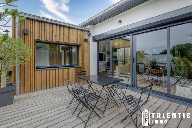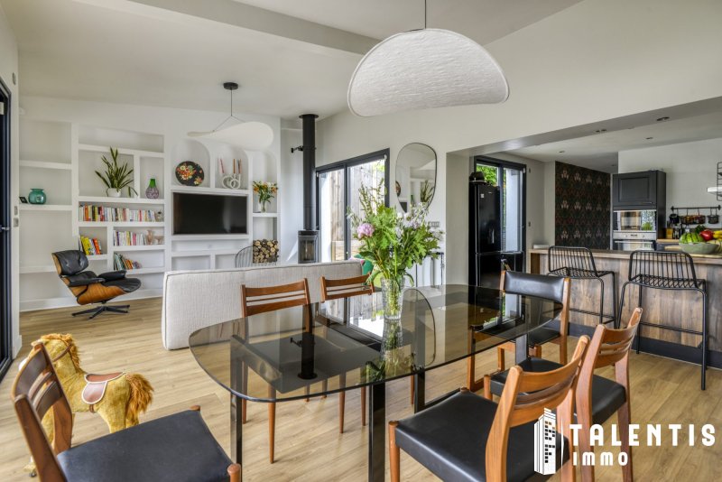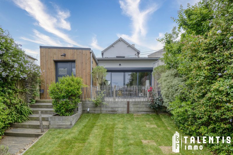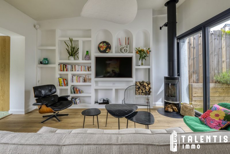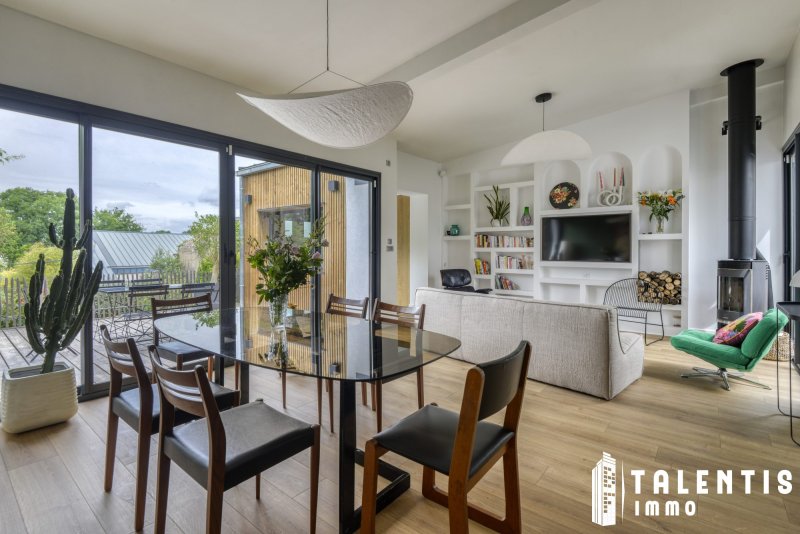 NANTES - JONELIERE Maison Familiale 6 Pièces (126m² 3ch + studio indépendant) Rénové avec gout Lumineux Calme Avec la réforme prévue en 2026, le DPE du logement devrait être reclassé en catégorie C. À deux pas de l'Erdre, cette maison rénovée avec élégance propose un cadre de vie rare. Ses volumes harmonieux, ses multiples espaces extérieurs et son environnement verdoyant en font une adresse exclusive pour les familles en quête de sérénité et de confort. Un agencement fonctionnel et optimisé sur deux niveaux et un studio indépendant avec : Au rez-de-chaussée : - Un hall d'entrée avec un placard de rangement, - Un séjour lumineux avec poêle à bois et accès direct sur le patio, et un salon traversant, avec accès direct à la terrasse, - Une cuisine ouverte, aménagée et entièrement équipée (four, micro-ondes, lave-vaisselle, plaques induction, hotte), - Un espace buanderie, - Une chambre (10.50m²), avec accès direct sur le second patio, - Un WC indépendant. - Un studio indépendant accessible par le second patio, comprenant une entrée avec placard, une salle d'eau avec WC et une chambre. A l'étage, un palier desservant : - Deux chambres (16.20m² et 11.75m²), avec chacune un placard, - Un WC indépendant, - Une salle de bains avec baignoire et douche. Les atouts de ce bien : - Maison lumineuse et paisible, - Environnement arboré et fleuri, - Belle terrasse et deux patios, - Poêle à bois. Transports : - Bus : Lignes 26 Arrêt : Chevalerie et 66,78,80 Arrêt : Grande Censive, - Tramway : Ligne 2 Arrêt : Recteur Schmitt / Ecole centrale / Audienca. A savoir : - Taxe foncière : 1 725/an - Exposition : Nord / Sud - Chauffage et eau chaude : Individuelle électrique Une maison pleine de charme, parfaitement entretenue et pensée pour la vie de famille. Bien située, fonctionnelle et prête à vous accueillir : un véritable coup de coeur à visiter sans attendre ! Honoraires inclus de 3.58% TTC à la charge de l'acquéreur. Prix hors honoraires 530 900 . Classe énergie D, Classe climat B Montant estimé des dépenses annuelles d'énergie pour un usage standard : entre 1470.00 et 2050.00 sur les années 2021, 2022 et 2023 (abonnements compris). Les informations sur les risques auxquels ce bien est exposé sont disponibles sur le site Géorisques : georisques.gouv.fr. . Talentis, l'immobilier sur mesure.