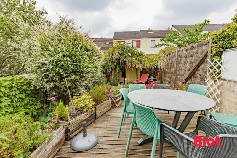 Elle bénéficie d'une belle pièce de vie traversante avec sa cuisine ouverte aménagée équipée donnant sur un jardin clos ensoleillé.