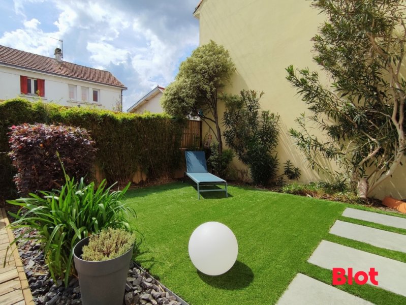 Jardin intimiste exposé sud-ouest avec grande terrasse de 20m².