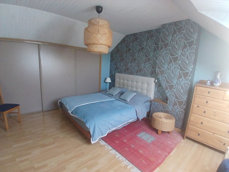 Au second niveau, un palier distribue :deux grandes chambres sous combles, une salle d'eau avec WC