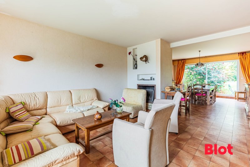 Cette maison propose sur actuellement deux niveaux, une pièce de vie traversante d'environ 43m² exposée Nord-Ouest et Sud-Est aux larges baies vitrées, adossée à une grande cuisine familiale.
