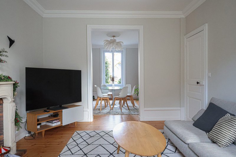 Nantes quartier Plessis-Tison / Rond-Point de Paris - Elégante maison de maître de la fin XIXème sur une belle parcelle de 675 m2. Située dans un quartier familial recherché, cette élégante maison de maître entièrement rénovée vous séduira par son charme et ses prestation de qualité. Baignée de lumière grâce à son exposition plein Ouest, la maison offre un cadre privilégié, idéal pour profiter du jardin paysagé, de sa grande terrasse et de sa piscine, particulièrement agréables aux beaux jours. Le rez-de-chaussée se compose d'une double réception traversante avec cheminée ainsi que d'une spacieuse cuisine dinatoire, l'ensemble ouvert sur la terrasse et le jardin. Un bureau complète ce niveau. Au 1 er étage, vous découvrirez 3 belles chambres lumineuses sur parquet dont une suite parentale ainsi qu'une salle de douche. Le second étage accueille deux chambres supplémentaires et une salle de bains. La maison dispose également d'un sous-sol complet, d'un grenier et d'un vaste double garage, offrant de nombreux espaces de rangement. A proximité immédiate des commerces, du parc, des transports (chronobus) et des établissements scolaires réputés, cette propriété conjugue élégance, confort et emplacement privilégié. Honoraires inclus de 4.5% TTC à la charge de l'acquéreur. Prix hors honoraires 1 004 780 . Classe énergie D, Classe climat D Montant estimé des dépenses annuelles d'énergie pour un usage standard : entre 3400.00 et 4650.00 sur les années 2021, 2022 et 2023 (abonnements compris). Les informations sur les risques auxquels ce bien est exposé sont disponibles sur le site Géorisques : georisques.gouv.fr.