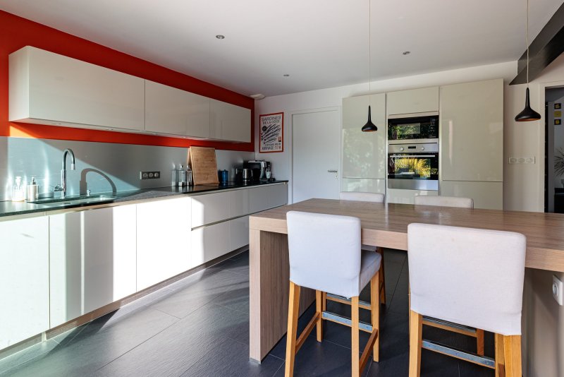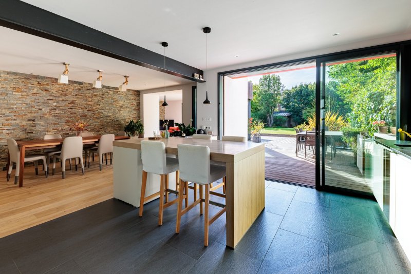 Nantes Rond-Point de Vannes / Sainte-Thérèse Implantée sur une belle parcelle de 513 m² exposée plein Sud, cette maison d'architecte familiale séduit par ses volumes, sa luminosité et la qualité de ses prestations. De plain-pied sur la terrasse et le jardin, la maison offre une spacieuse double réception (cheminée) baignée de lumière, ouverte sur un jardin paysagé soigneusement entretenu. La cuisine contemporaine, conviviale et fonctionnelle, profite elle aussi d'une agréable vue sur l'extérieur. Le premier étage accueille une suite parentale donnant sur le jardin, deux chambres supplémentaires ainsi qu'un bureau. Au deuxième étage, vous découvrirez deux autres chambres et une vaste salle de jeux, idéale pour une famille. Les espaces annexes complètent parfaitement l'ensemble : arrière-cuisine, lingerie et grand double garage. Maison confortable et élégante, offrant une excellente qualité de vie, à proximité immédiate des commerces et des transports. Terrain piscinable. Honoraires inclus de 4% TTC à la charge de l'acquéreur. Prix hors honoraires 1 150 000 . Classe énergie C, Classe climat C Montant moyen estimé des dépenses annuelles d'énergie pour un usage standard, établi à partir des prix de l'énergie de l'année 2021 : entre 1758.00 et 2378.00 . Les informations sur les risques auxquels ce bien est exposé sont disponibles sur le site Géorisques : georisques.gouv.fr.